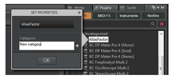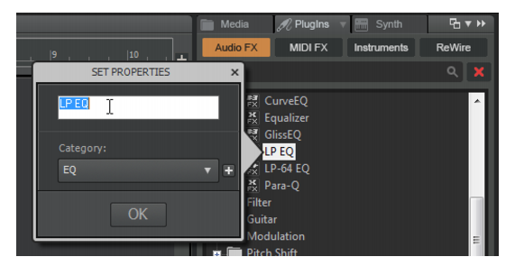 2. Dans la boîte de dialogue Définir les propriétés, cliquez sur le nom du plug-in, puis saisissez le nouveau nom.