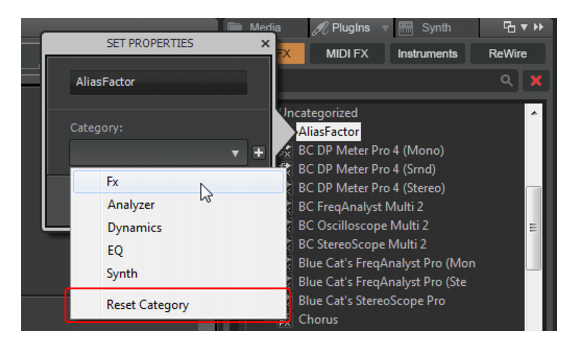 2. Dans la boîte de dialogue Définir les propriétés, cliquez sur la petite flèche vers le bas afin d'ouvrir la liste déroulante, puis sélectionnez Réinitialiser la catégorie.