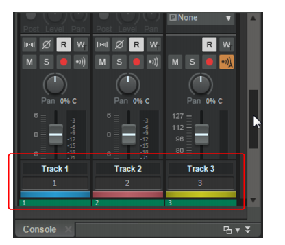 Remarque: Vous avez la possibilité de colorer intégralement les tranches de piste si vous utilisez le thème Mercury. L'option Afficher les couleurs des tranches de la boîte de dialogue Edition > Préférences > Personnalisation - Couleurs n'est pas disponible avec le thème Tungsten. Une prochaine version de SONAR permettra de colorer l'intégralité des tranches de canal quel que soit le thème choisi.