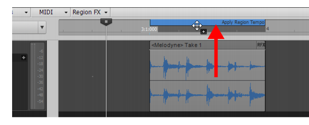 Cliquez sur le bouton Tempo Options dans Melodyne, puis sélectionnez Use the tempo grid detected by Melodyne (Utiliser la grille de tempo détectée par Melodyne).