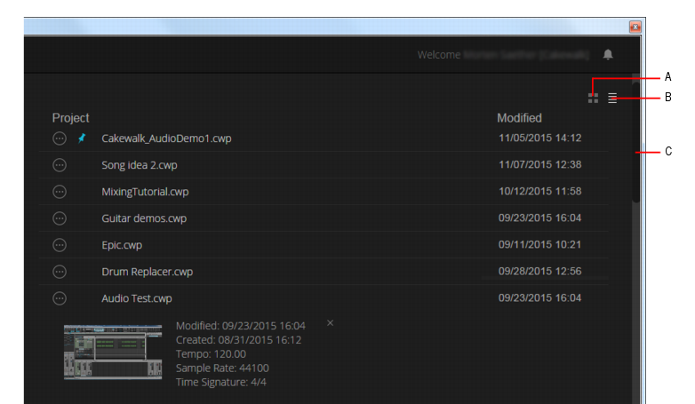 Figure 39. Projets récents en mode Liste.