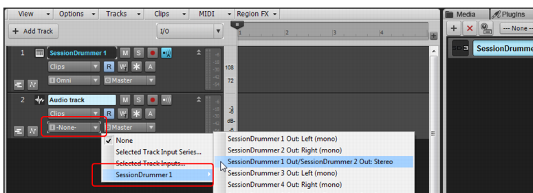3. Figure 46. Créez une piste audio et sélectionnez la sortie souhaitée du synthé virtuel dans la commande Entrée.