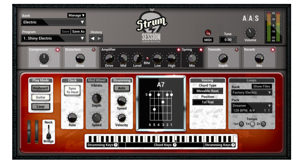 Le plug-in AAS Strum Session GS-2 d'Applied Acoustics Systems reproduit avec un réalisme étonnant le son de guitares acoustiques et électriques. Ce synthétiseur a été conçu pour permettre de créer facilement des parties de guitare réalistes. Vous pouvez désormais créer des parties de guitare dans vos morceaux en utilisant votre clavier MIDI ou des boucles MIDI.