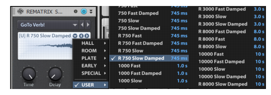 Conseil: Avec les réponses impulsionnelles les plus longues, le fait de réduire la valeur Time de REmatrix Solo supprime le petit claquement dans les aigus en fin de reverb, ce qui génère un son de reverb plus standard marqué par un temps d'attaque. Ces reverbs au son relativement authentique peuvent s'avérer très utiles.