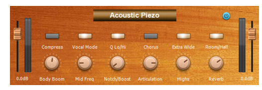 Body Boom. Permet d'augmenter ou de réduire les sons étouffés dans les graves extrêmes qui caractérisent la plupart des guitares acoustiques.